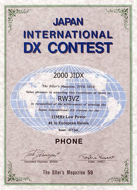 Участники из Японии передают RS(T) и номер префектуры (от 01 до 50), остальные - RS(T) и номер CQ-зоны.