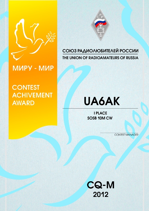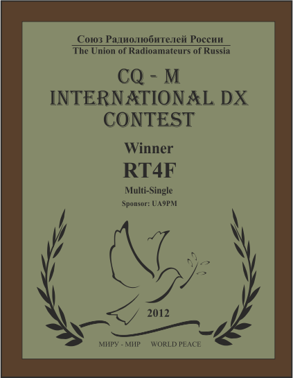 Радиостанции, занявшие 1-е места в мировом зачете в видах программы SOAB и MOST награждаются дипломами на металле (плакетками).