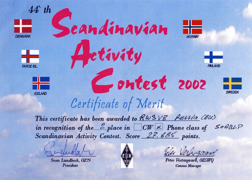 - 2 очка за QSO с европейскими станциями (вне Скандинавии);