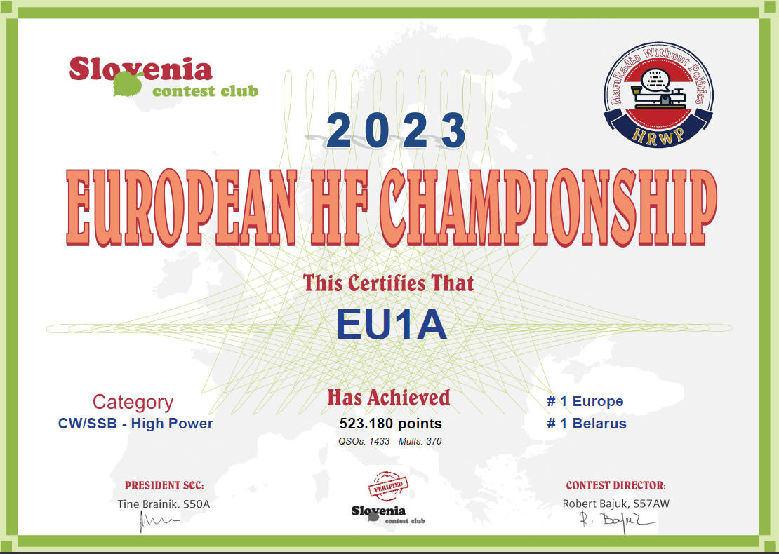 Участники стран Европы проводят радиосвязи между собой, соревнуясь за звание "EUROPEAN HF CHAMPION".