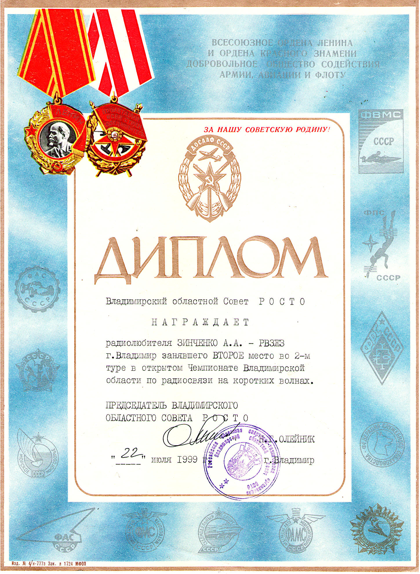 Диплом за Владимирский тест 1999