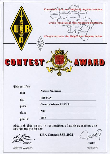 Сертификаты можно будет загрузить с сайта UBA. Призом EC TROPHY награждаются победители от EC в классах A,С,E (станции с одним операторм) по сумме результатов в обеих телефонном и телеграфном соревнованиях.
