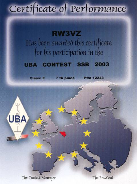 Общий вызов в соревнованиях: CW - "TEST UBA", SSB - "CQ UBA".