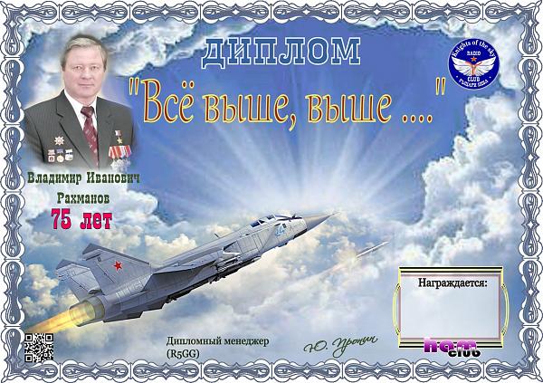 Клуб радиолюбителей-авиаторов «Рыцари неба» с 10 по 20 августа 2025 г. проводит Дни активности, посвящённые Дням Военно-воздушных сил России, Воздушного флота и 75-летию лётчика-испытателя 1 класса Героя Российской Федерации В.И. Рахманова и представляет диплом, посвящённый этим событиям.
